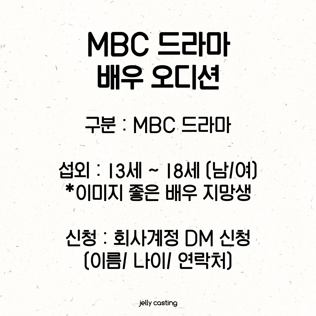 MBC드라마에 출연 할 배우를 모집 합니다.