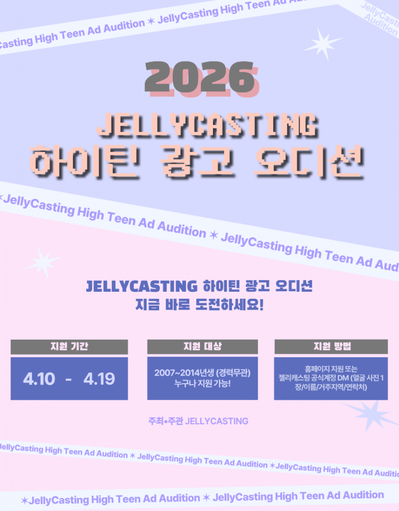 젤리캐스팅 공식계정 DM (얼굴 사진 1장/이름/거주지역/연락처)